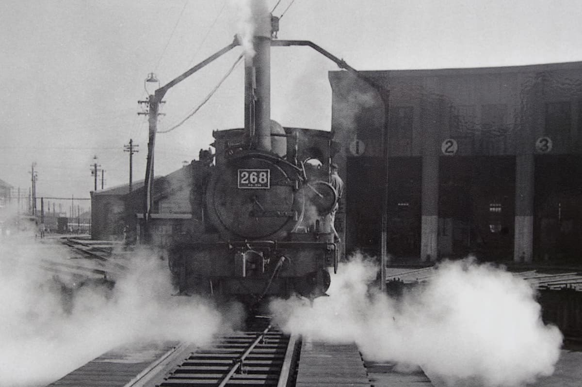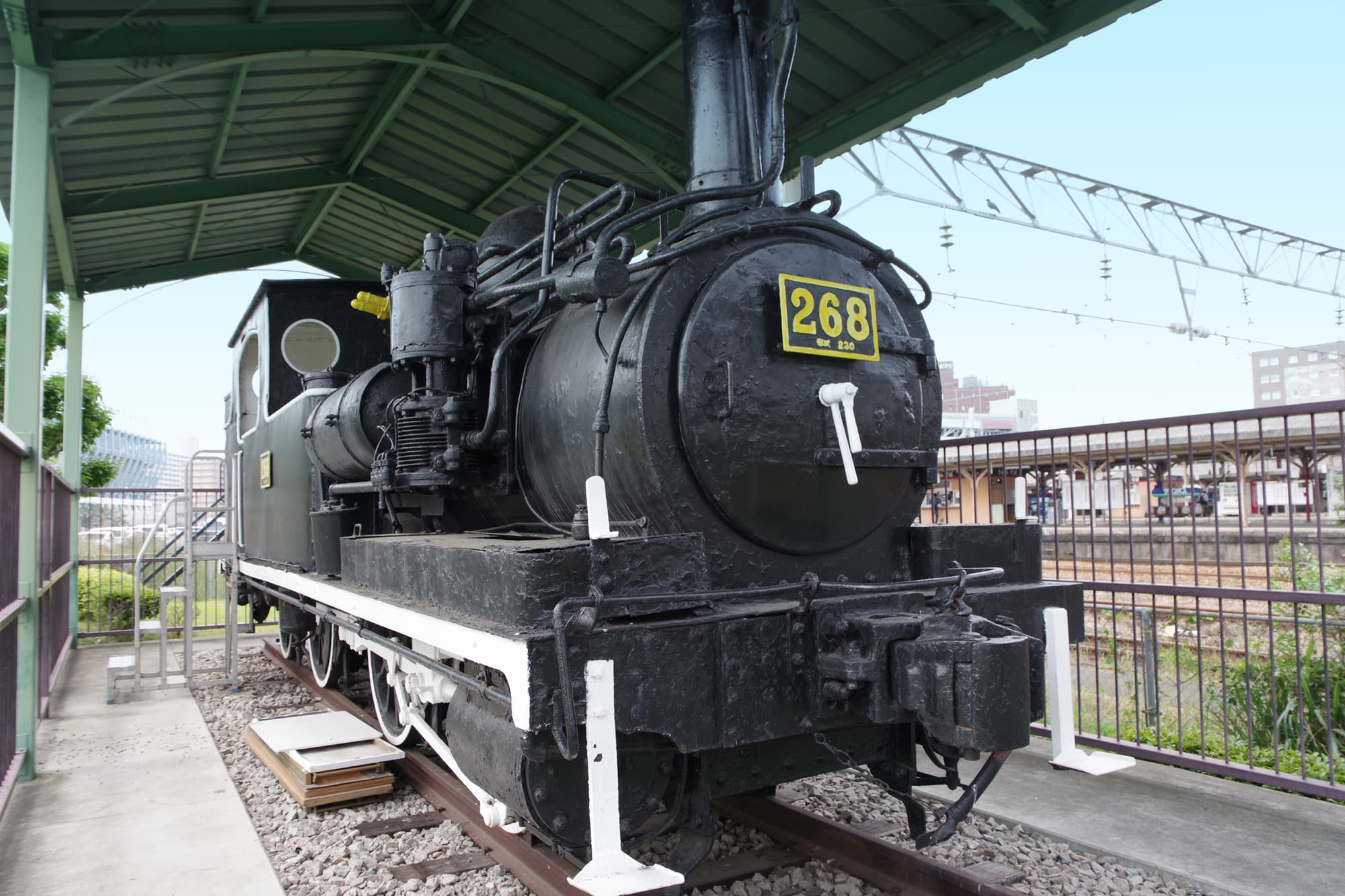230形蒸気機関車はイギリスから輸入されたタンク式機関車を日本の使用条件に適合するように一部改良して設計され、民間工場が国内で最初に量産化に成功した蒸気機関車です。製造は汽車製造合資会社(現川﨑重工㈱)の大阪工場で明治35年から39年(1902~1906)にかけて合計51両が製造され、最終的に41両が旧国鉄に在籍していました。この機関車は北越鉄道株式会社(現在の信越本線の一部)の発注により明治38年(1905)に「北越鉄道G形18号機関車」として製造されたものです。鉄道国有法施行後に「268号」と改番されました。
